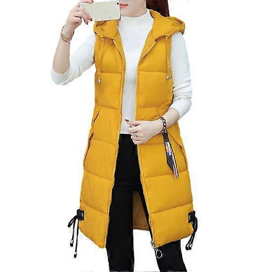 Fall Winter Cotton Vest Coat Mid Length Thickened Padded Sleeveless Zip Up Zipper Closure Drawstring Hooded Windproof Heat Retention Lady Waistcoat