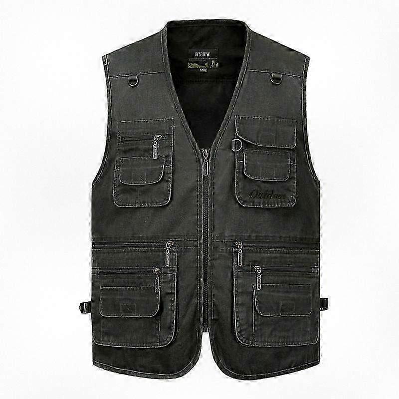 Men's Casual Vest Jacket for Spring and Autumn, Loose Fit Cotton Windproof Coat with Multi-Pocket Zipper, Collarless Sleeveless Design