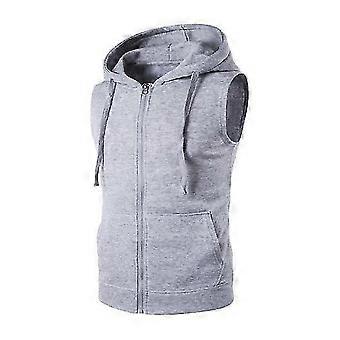 Men Summer Vest Jacket Hooded Drawstring Sleeveless Zipper Placket Vest Coat Solid Color Pockets Zipper Placket Waistcoat