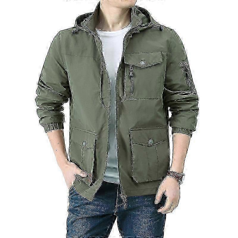 Jacket Men's Loose Plus Size Multi-pocket Jacket Can Take Off The Hood Work Coat Top