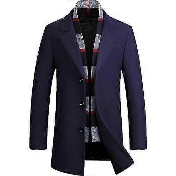 2025 Men's Wool Blend Coat with Plaid Scarfs Notched Collar Breasted Coat
