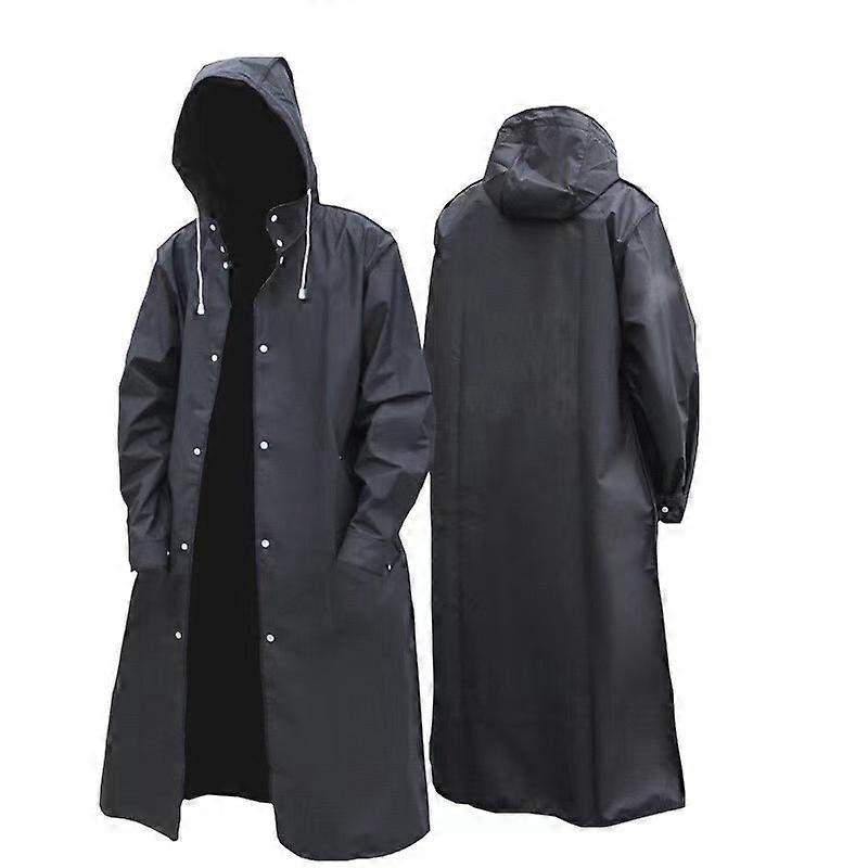 Long Windproof Waterproof Hooded Raincoat For Adults Outdoor Cycling Hiking Black