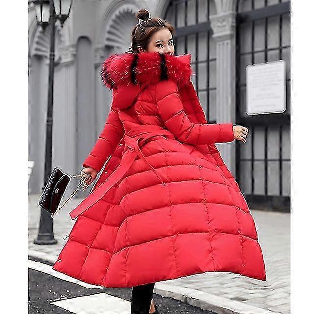 Hooded Winter Parka for Women, Long Cotton Coat with Fur Collar, Loose Fit Knee-Length Warm Padded Overcoat