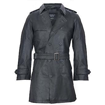 מעיל טרנץ' שחור שחור ארוך לגברים מעיל עור