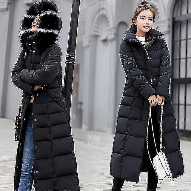 Long Cotton Coat for Women with Fur Collar and Hood, Knee-Length Winter Parka, Loose Fit Padded Overcoat