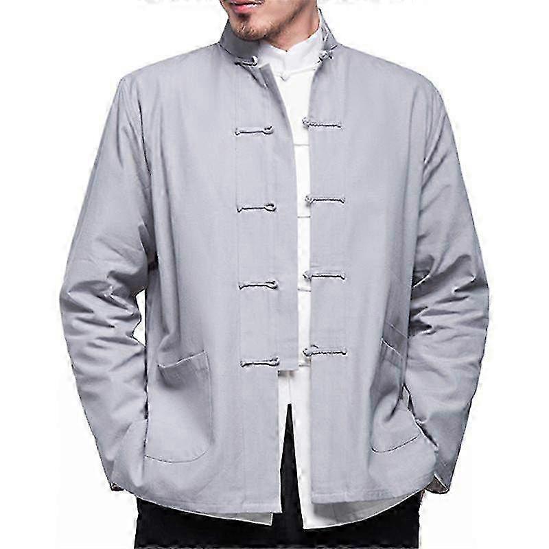 Men's Chinese Style Loose Cotton Linen Coat - Traditional Solid Color Cardigan Jacket for Spring & Autumn Outerwear