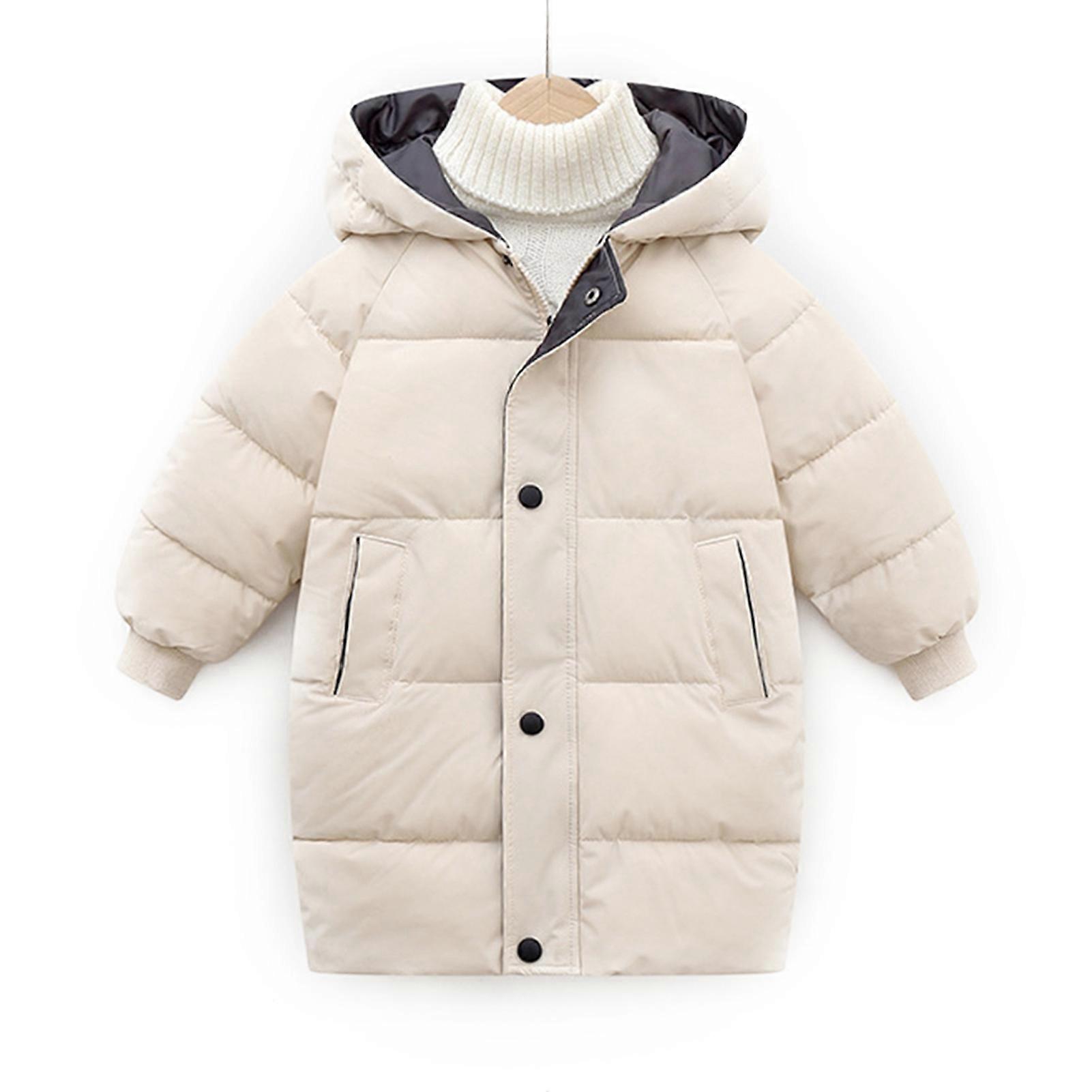 Kid\'s Mid-Length Puffer Jacket Winter Coat with Hood & Pockets Solid Color