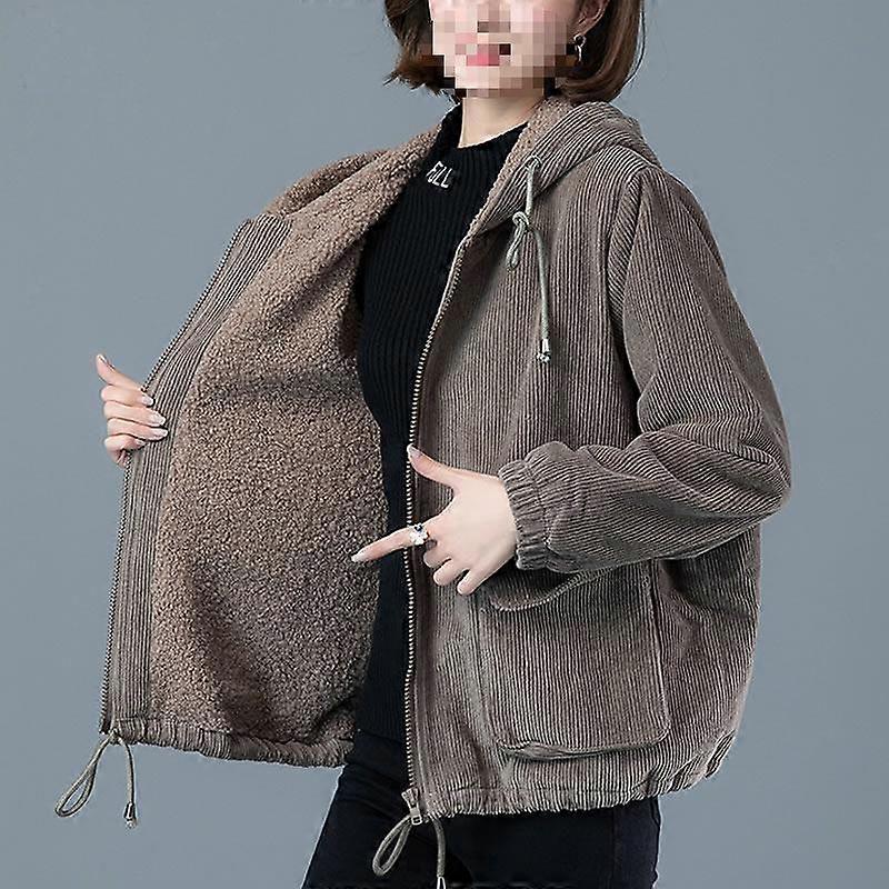 Women's Coat Autumn Winter Add Velvet Warm Jacket Korean Pocket Hooded Casual Outwear Loose Female