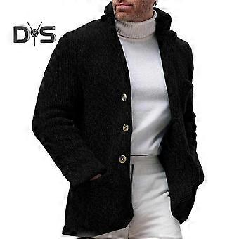 Men Vintage Stand Collar Sweater Jacket Casual Single Breasted Stand Collar Long Sleeve Pockets Slim Sweater Coat