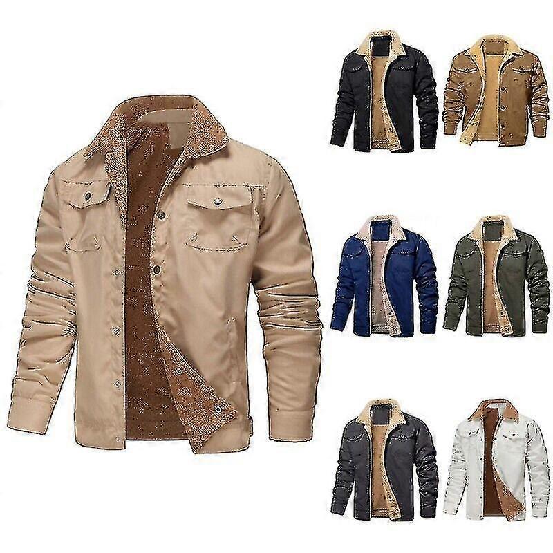 Mens Fleece Cotton Lined Thick Coat Winter Warm Button Bodywarm Jacket Outwear - C