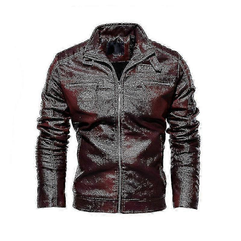 Men's Motorcycle Leather Jacket Stand Collar Zipper Fleece 2025