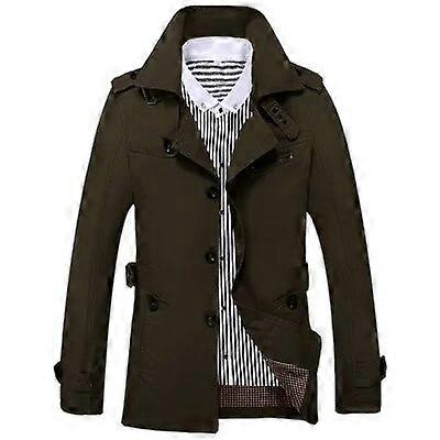 Male Overcoat Long Jacket Coat Men's Trench Business Trenchcoat Masculina Windbreaker Outwear Cotton Fabric army green