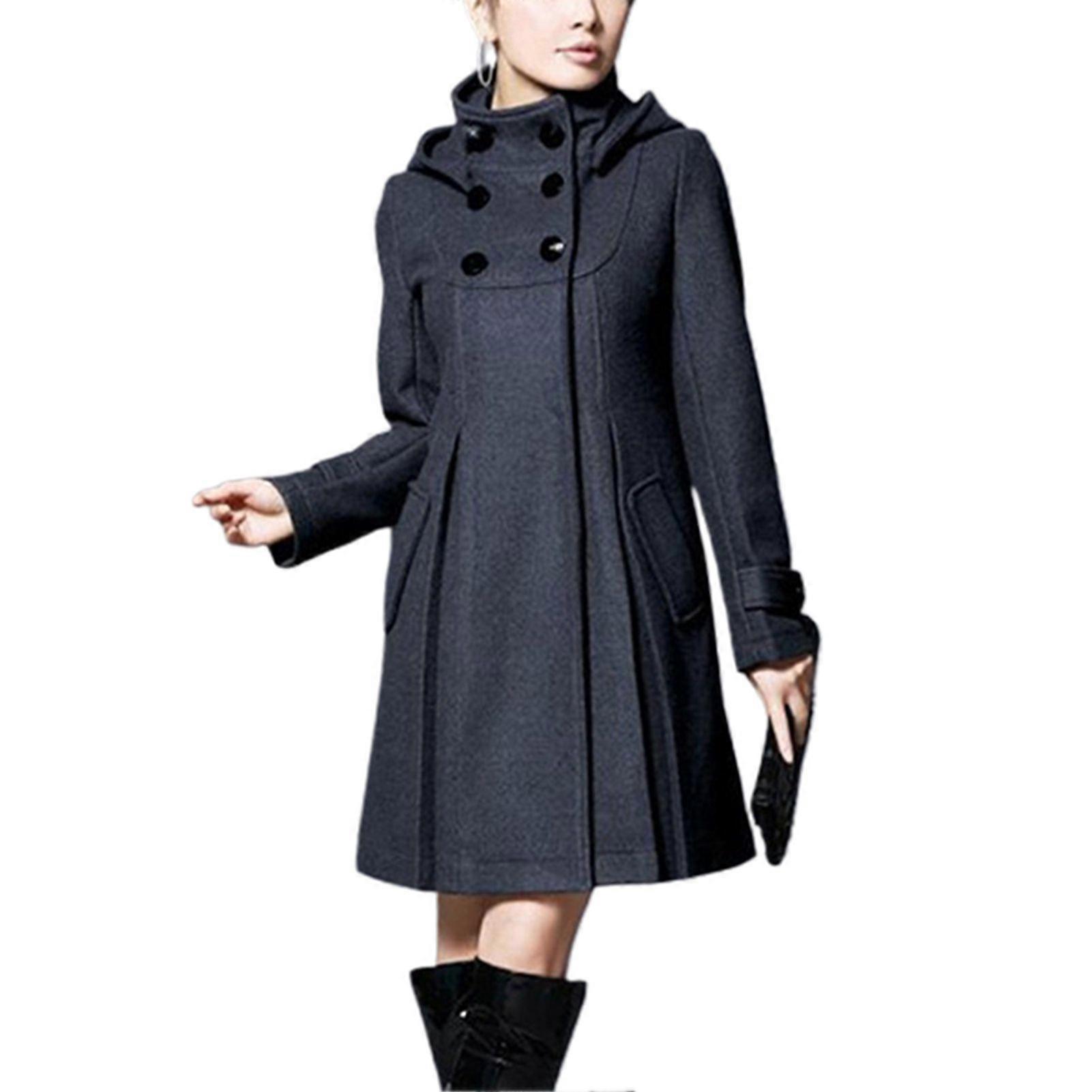 Women Peacoat Fleece Coat Standing Collar Medium Long Trench Coat Double Breasted Design for Girls