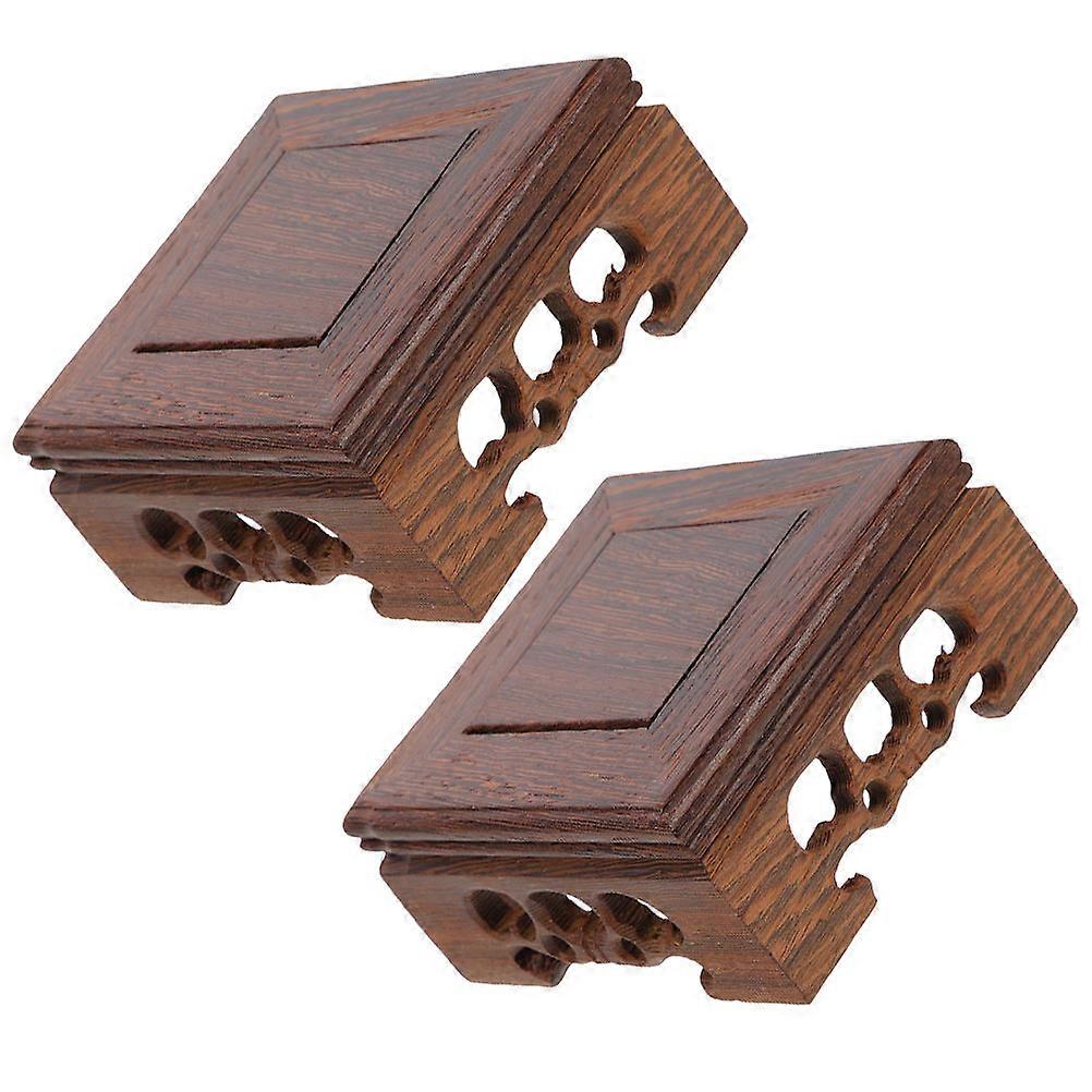 Wooden Display Stands For Teapot Bonsai Plant 10X3.6CM Dark Red Prevent Floor Wear 2Pcs