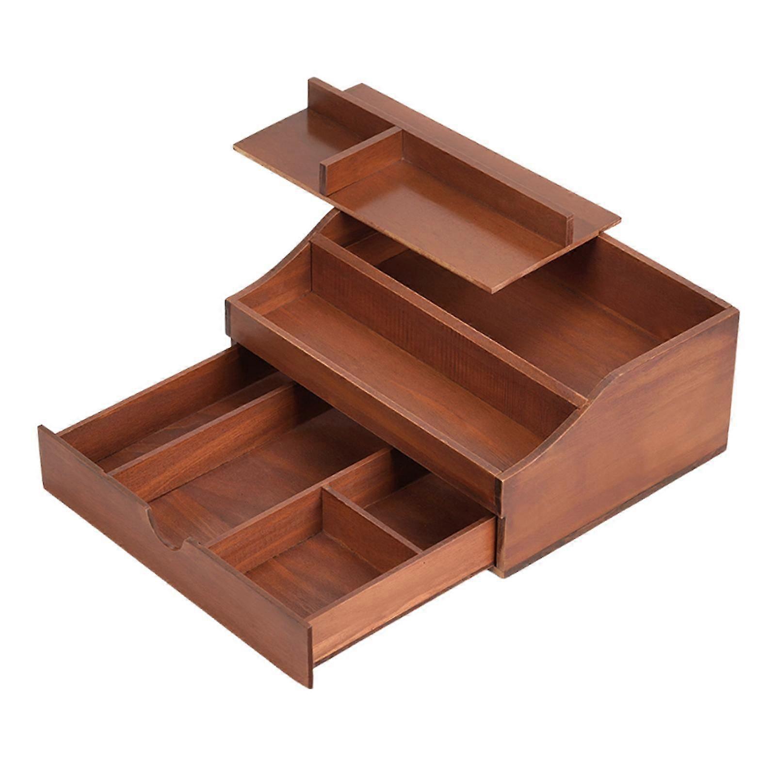 Description: Premium Material: The Perfume Stand Organizer is made from quality wood, ensuring wear resistance, durability, and long term use while maintaining its elegant appearanceLarge Capacity: The Display Holder measures about 30cmx24cmx13cm/11.81inchx9.45inchx5.12inch, and features layered design with drawer, providing ample storage space for your cosmetics and jewelry while keeping them neatly organizedVersatile Display and Storage: The Cosmetics Organizer can hold lipstick, perfumes, and other makeup accessories; It also doubles as a jewelry box for earrings, rings, bracelets, and necklacesWide Application: The Wooden Makeup Organizer is suitable for dressing room, dresser, bedroom, bathroom, exhibition hall, cosmetics store, etcHome Decor: Retro design, can add beauty and elegance to the room Specification: Material: Wood Size Chart: 30cmx24cmx13cm/11.81inchx9.45inchx5.12inch Package Includes: 1 Cosmetic Organizer Note: Please allow slightly errors due to manual measurement and different monitors.