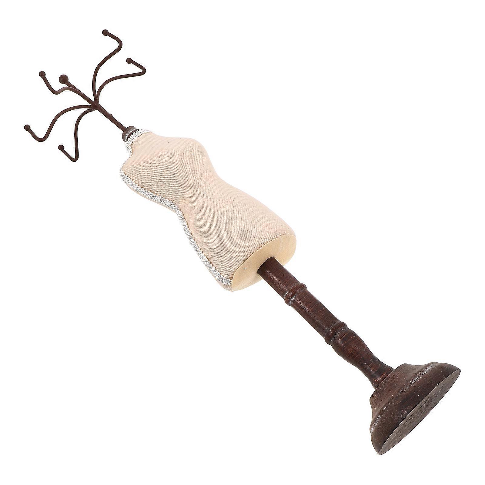 Necklace Display Holder Jewelry Mannequin Stand for Storage 4Pcs Beige Wood