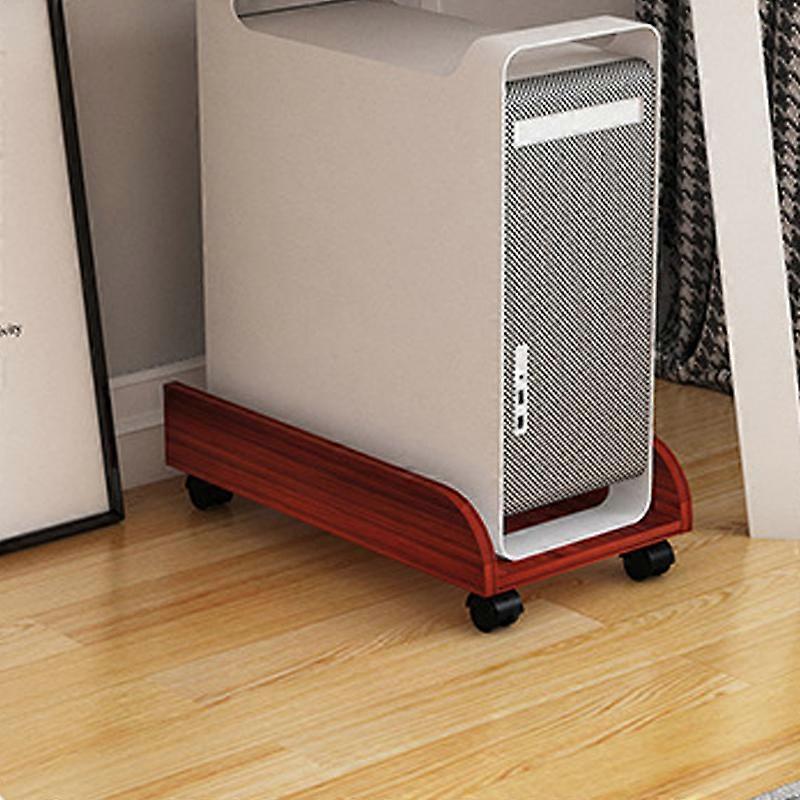 Universal Wooden Computer Tower Stand with Pulleys Teak Ergonomic