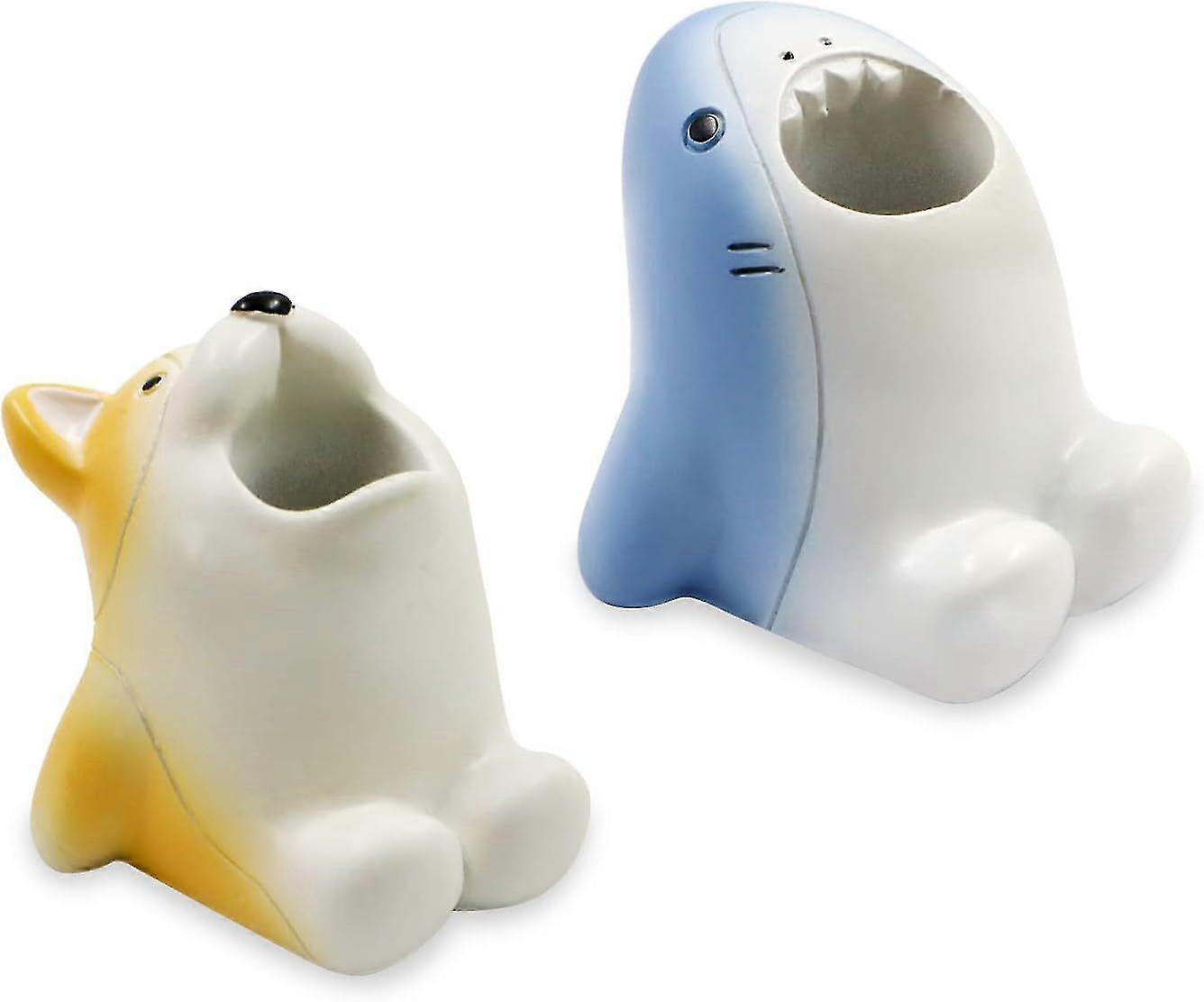 2Pcs Mini Toothbrush Holder Stand, Fun Cartoon Animal Design, Single Pen Holder for Desk, Unique Gift Idea
