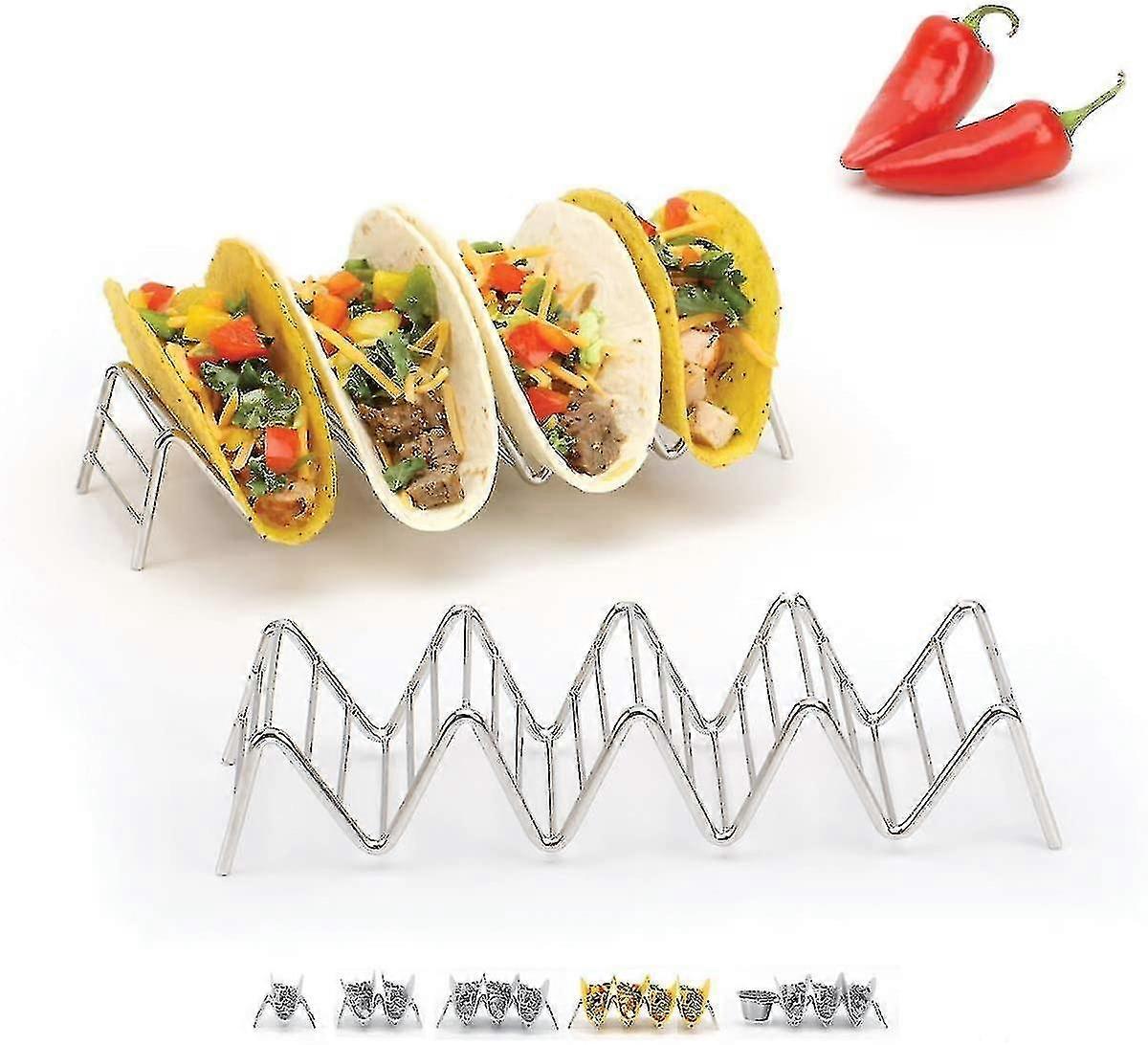 Holder Stand With Salsa Cup - Chrome Finish - Premium 18/8 Stainless Steel - Holds 3 Hard Soft Tacos - Six Styles Available
