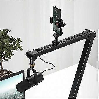 מעמד מיקרופון מתכוונן 360 מעלות עם מחזיק טלפון לסטרימינג בשידור חי מחזיק מיקרופון זרוע בום כבד