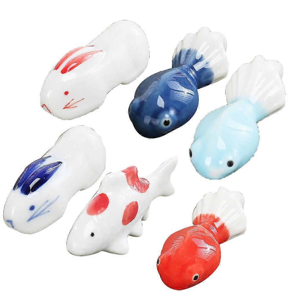 Cute Chopsticks Stand Goldfish Bunny Style Porcelain Home Decoration 5.6 x 2.3 x 2.3 cm Storage 6Pcs
