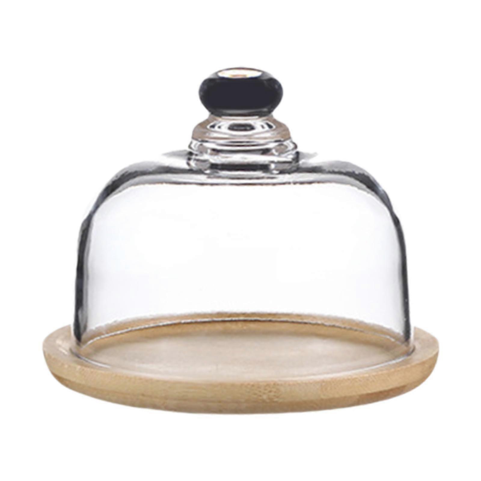 Bamboo Cake Stand with Dome Cake Diaplay Plate Holder for Party Shop Display