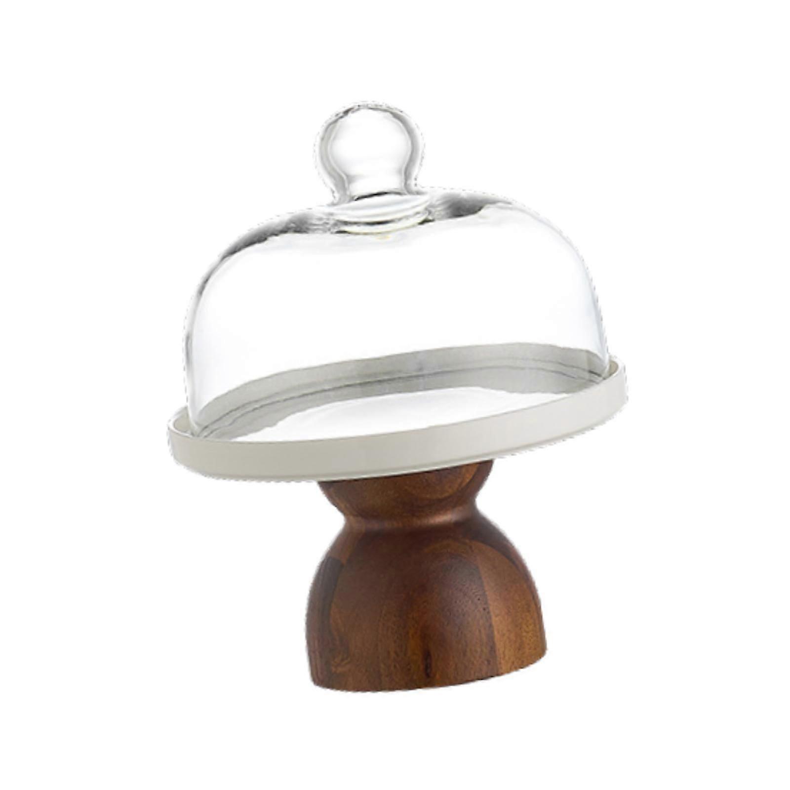 Wooden Cake Stand with Dome Serving Tray for Parties Decor Table Centerpiece Small