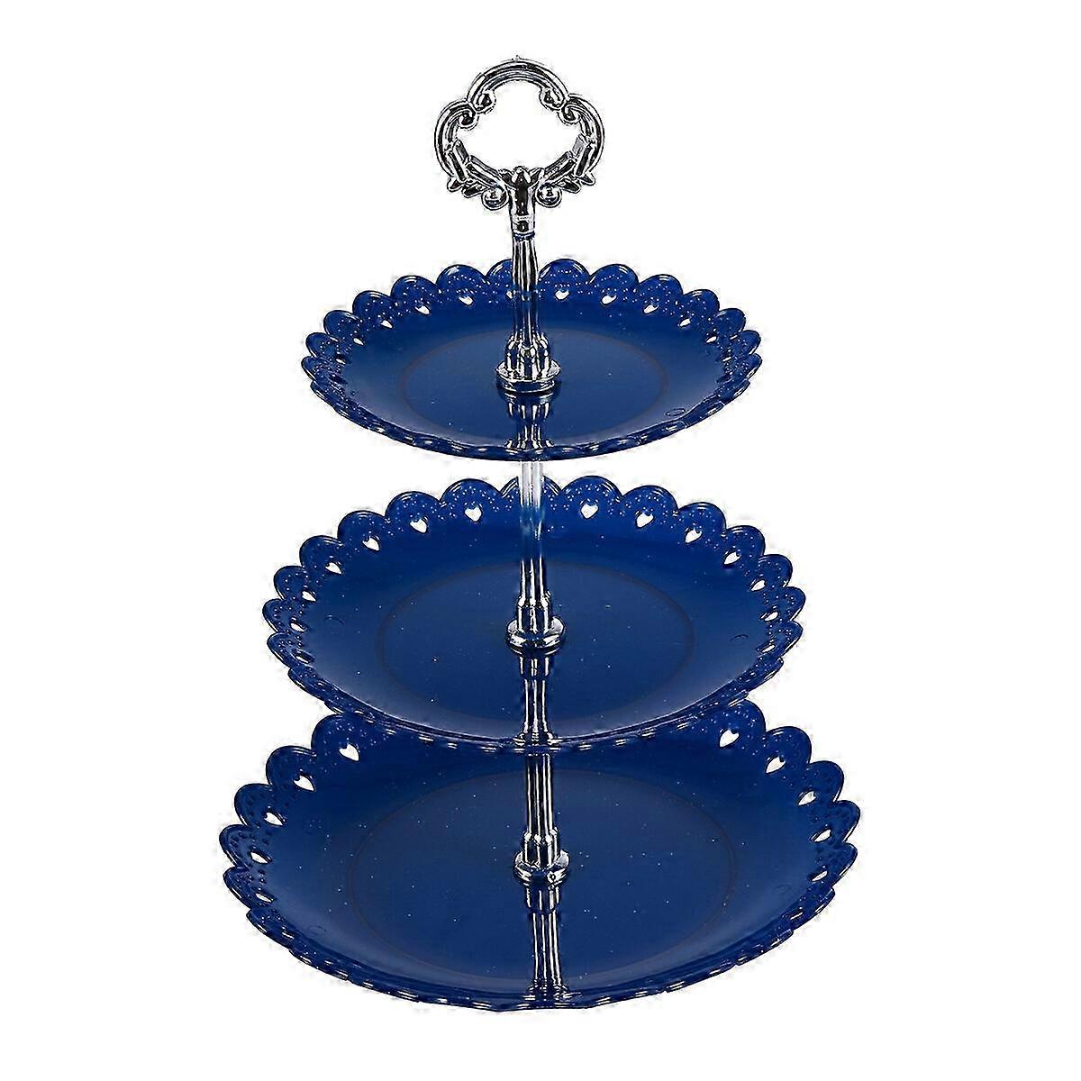 Three-Layer Fruit Plate Cake Stand Kitchen Accessory Party Dessert Storage Rack (Blue)