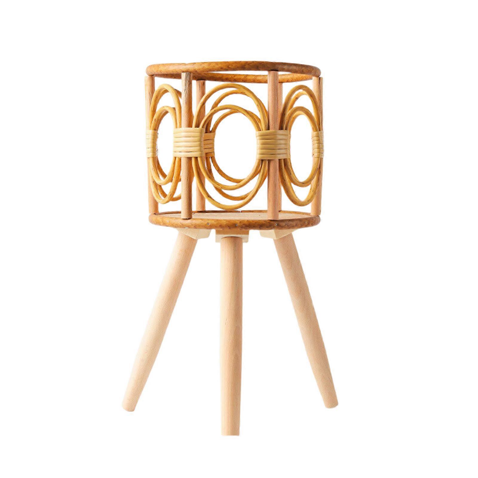 Indoor Plant Stand Rattan Woven Flower Pots with Stand Floor Planter Baskets Rack Wooden Plant Shelf Garden Decoration