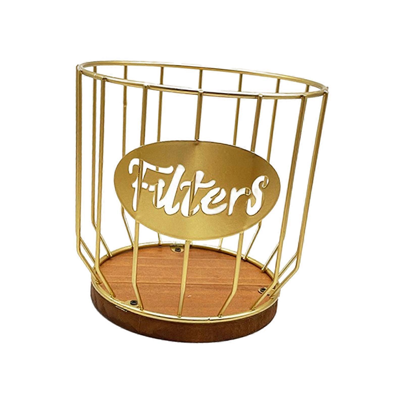 Elegant Wire Coffee Stand With Wood Bottom Individualized Mug Designed Pods Holder For Countertop Display gold