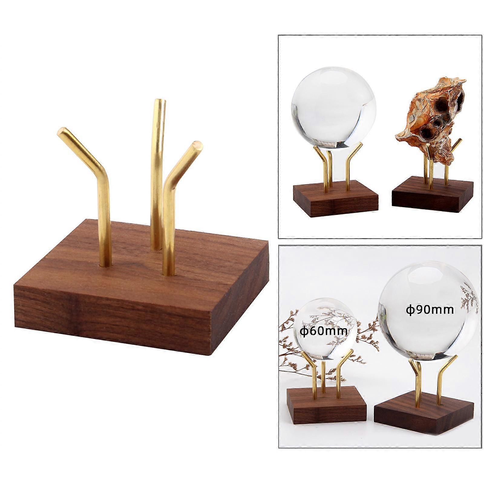 Wood Display Stand Brass Arm Pedestal Square Base Sphere Holder Collectibles Marbles Gems Base for Minerals Crystals Rocks Fossils Decors