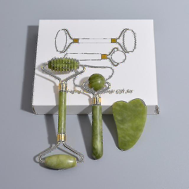 Facial Massager 3-piece Roller Massager Natural Jade Massage Roller Spatula Facial Treatment Roller Jade Roller Massage Slimming