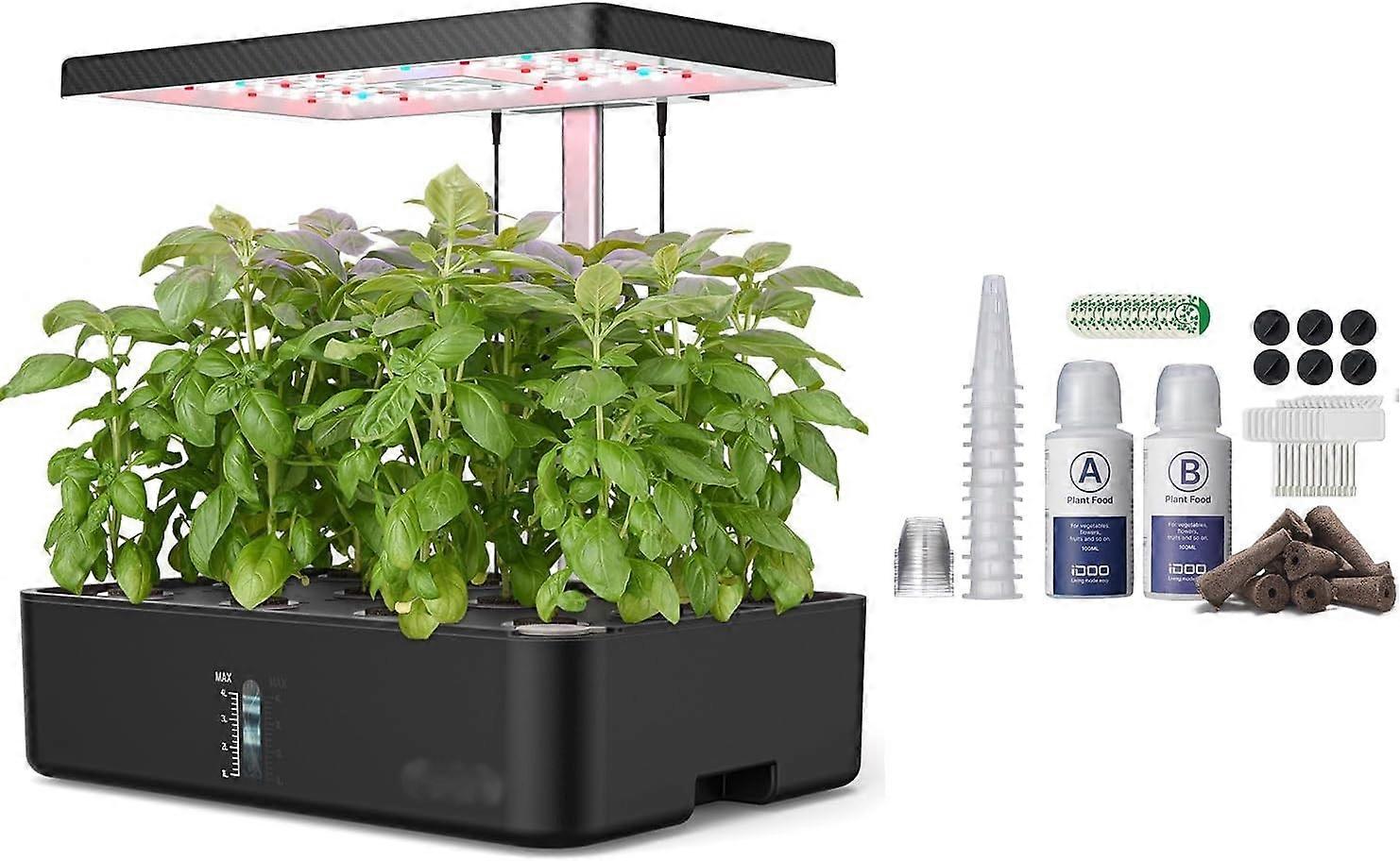 Hydroponics Growing System, Smart Indoor Garden Starter Kit with LED Grow Light, Smart Gardening Kits for Home Kitchen, Automatic Timer Germination Kit, Height Adjustable Black