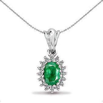 Jewelco London 9ct White Gold Cluster Set Round H I2 0.12ct Diamond and Oval Green 0.52ct Emerald Royal Cluster Pendant