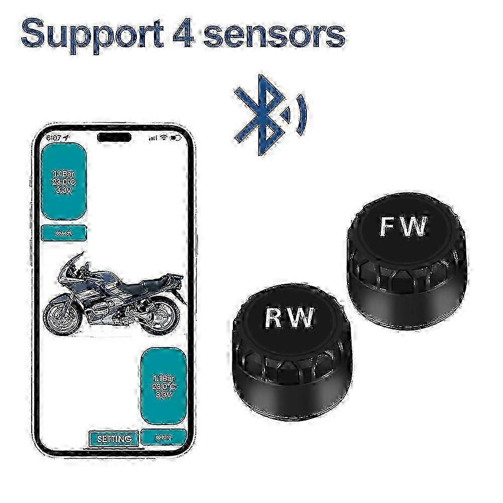 Feature: and . Dynamically monitor: This motorcycle Tire Pressure Monitoring System is dynamically monitors all tire pressure and temperature, improves fuel efficiency, and prolongs tire life and ensures driver safety. Long battery life and keep safe: The Bluetooth-Compatible external Motorcycle TPMS sensors , with long lasting battery life for almost 3-5 Years. Easy operation via APP: This BT TPMS is support Bluetooth-Compatible 4.0 or above and APP Operate. Tire Pressure Monitoring System is designed for cellphones, support APP for iOS and Android. When do the BT scan, the APP will ask for permission of location, please allow to use it, it is android system request when we develop the Bluetooth-Compatible TPMS. High Accuracy: Real time monitor with 2 TPMS Sensors, waterproof and anti - corrosion, anti -theft technology, fully qualified for rainy days. High sensitivity, good accuracy for measuring pressure and temperature. Easy Setup: You can set up in 3 easy steps in just 10 minutes. 1. Remove tire valve caps, put in anti-theft screws