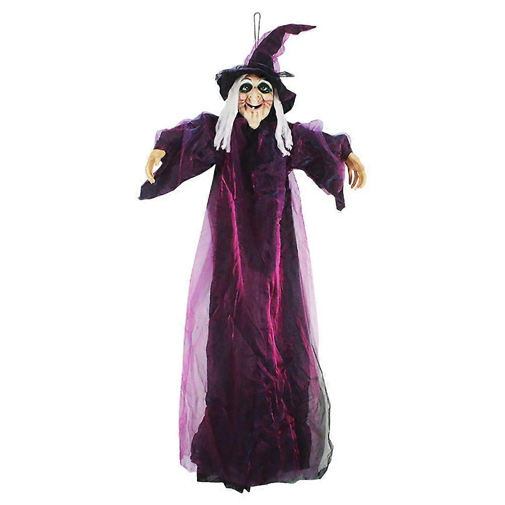 Spooky Halloween Witch Hanging Ghost Sound Activated Witch Hanging Decor Light-Up Witch Decoration for Indoor Use Haunted House Witch Decor Halloween