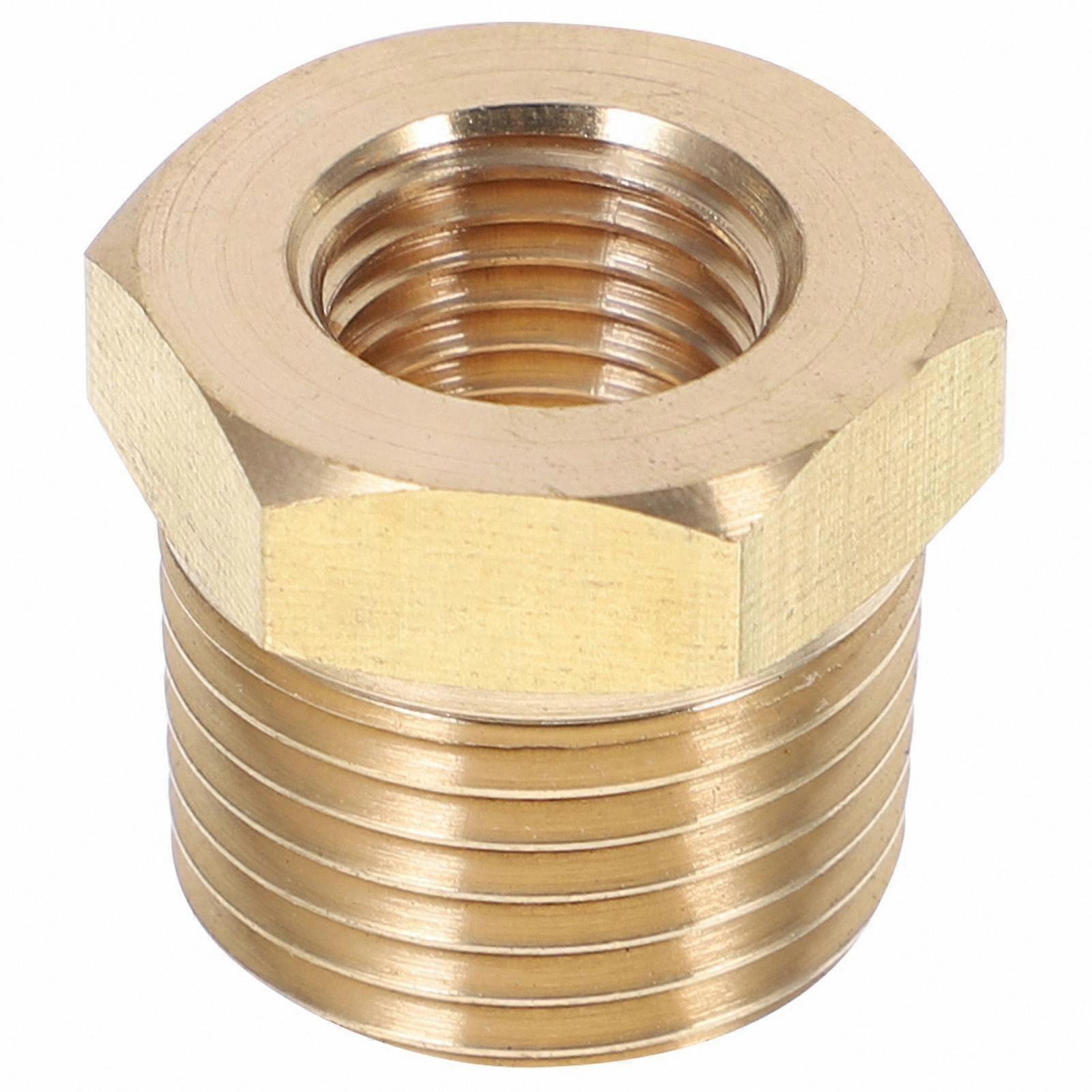 Description The pipe fitting is made of 304 stainless steel forging, offering high hardness and wear resistance. It effectively resists corrosion and rust, enhancing durability and service life. Suitable for use with fuel, air, water, oil, and gas systems. Not intended for use in drinking water applications. Features - Color: Golden - Material: 304 Stainless Steel - Size: 2.00 x 2.00 x 1.20 cm / 0.79 x 0.79 x 0.47 in - Thread: 1/2" NPT Male x 1/4" NPT Female - Temperature Range: -53 to 121°C (-65 to 250°F) - Maximum Working Pressure: 1200 psi - Hex bushing with 1/2" NPT male to 1/4" NPT female thread, ideal for connecting pipes of different diameters - Reducer constructed from 304 stainless steel for reliable performance in high-pressure and high-temperature environments - Durable, efficient, and easy to replace, making it a practical choice for fluid system applications - Resistant to both low and high temperatures - Standard threaded design for broad compatibility - Suitable for use with outdoor faucets, hose splitters, garden timers, garden filters, and similar applications Package List 1 x Pipe Fitting