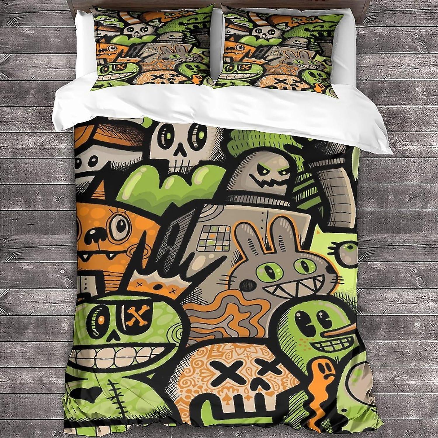 ARIJORJA monster 3D Graffiti Duvet Cover And Pillowcases,Graffiti Printed Quilted Bedding Set for Bed Room - Super Breathable Hypoallergenic Full Bed