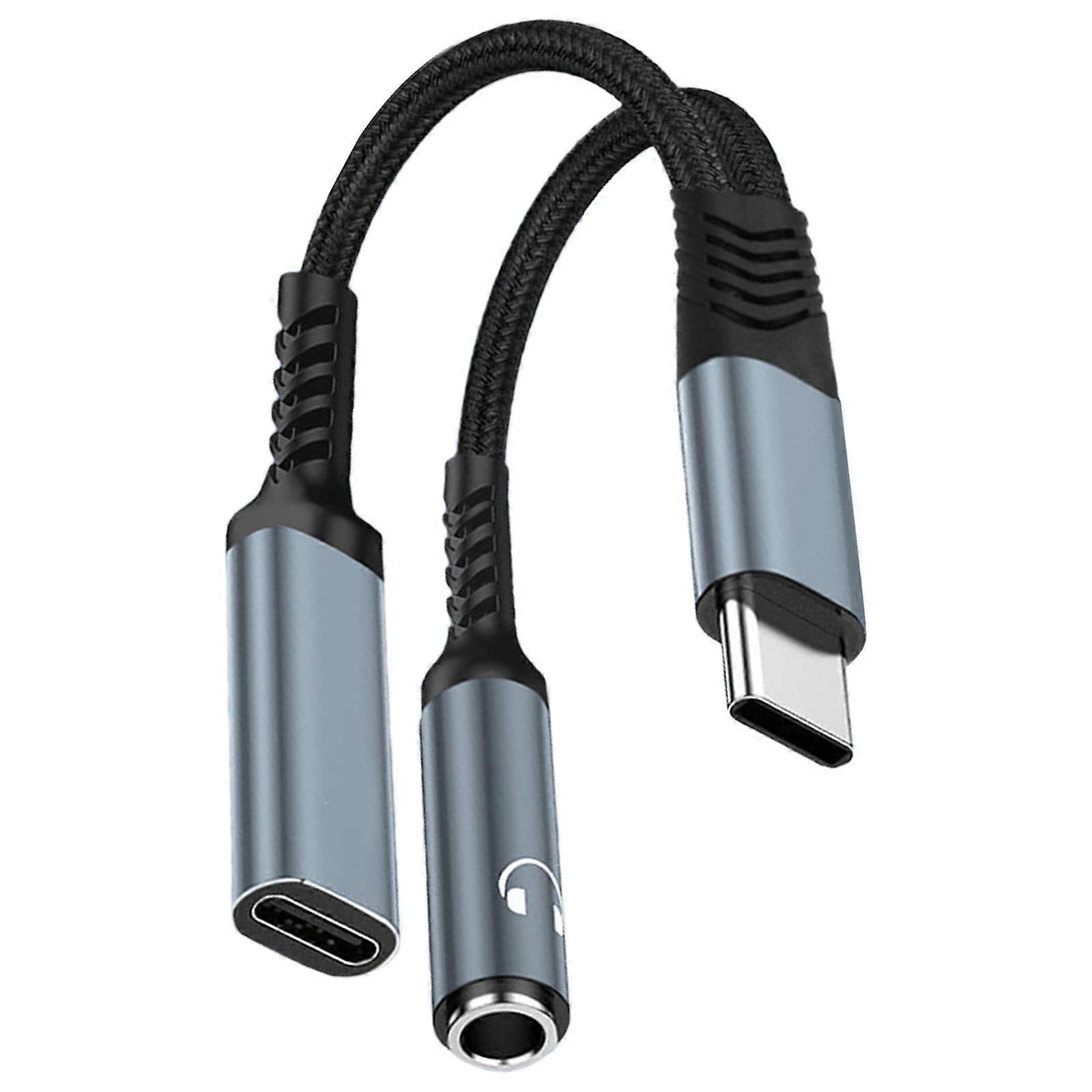 Two Port Type C To 3.5mm Sound Splitter And PD60W Charging Cable With Builts In DACs Chip For HIFIs Sound Multicolor