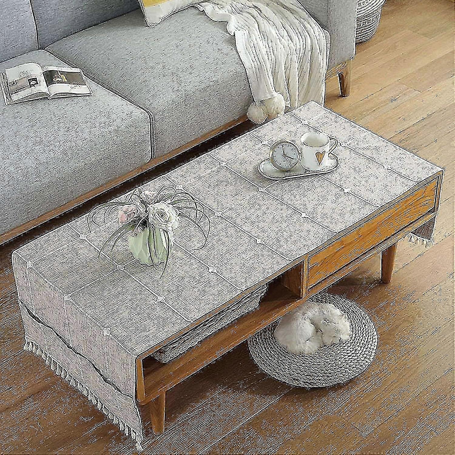 Wipeable Linen Coffee Tablecloth With Pockets,fridge Dust Cover, Table Runner50x145cm(20x57inch)
