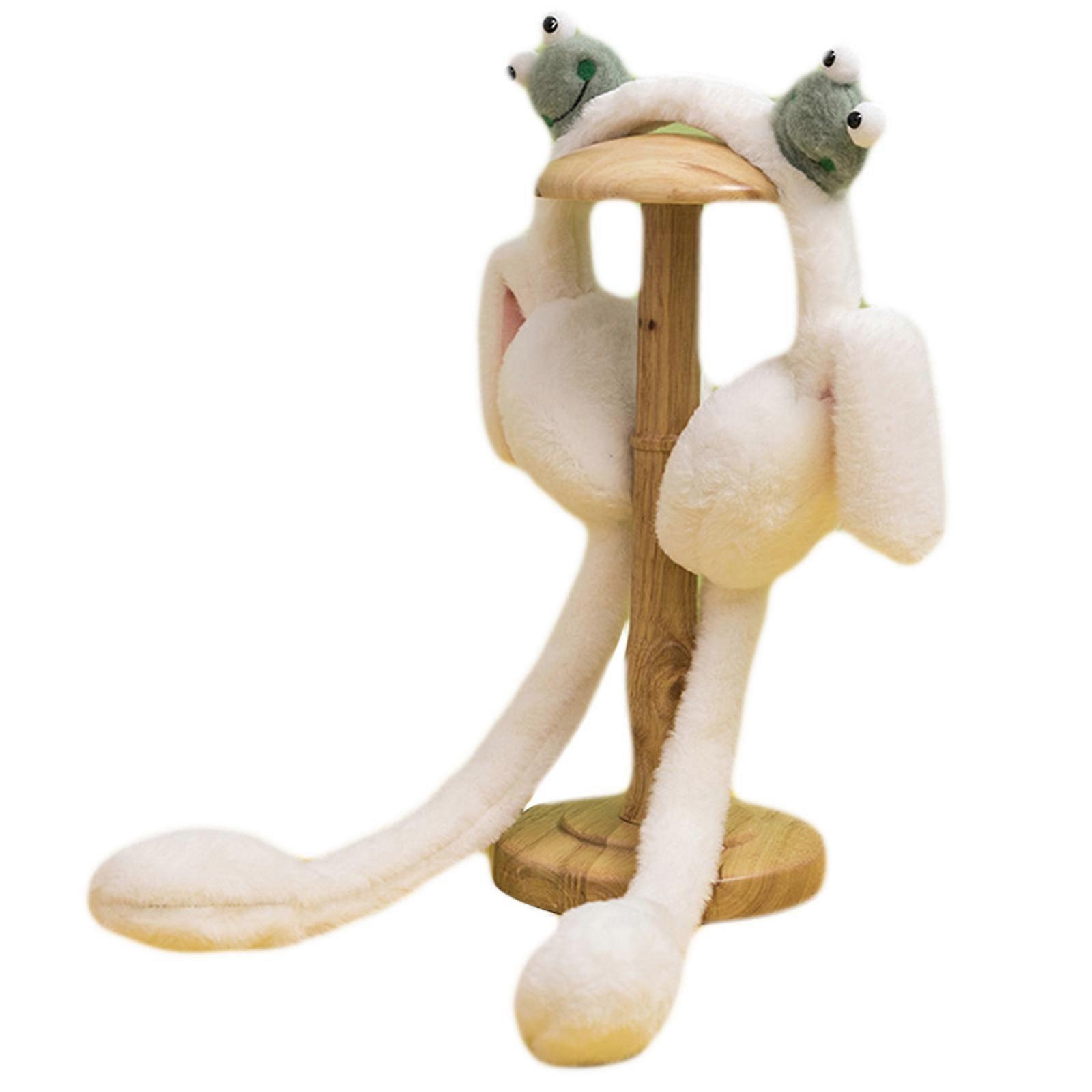 Funny Plush Earmuff Moving Jumping Earwarmer with for Frog Decor Cute Unisex Animal Ear Flap for Toddler Multi Color White