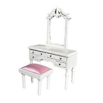 Realistic Dressing Table Model Pretend Play for Kids Role Display Stool Model Toy Vintage Furniture for 1:12 Doll House