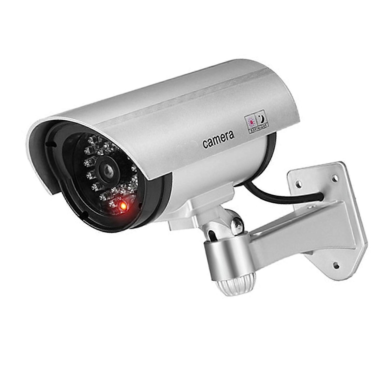 Fake Security Camera Plastic Housing Outdoor Use Visual Obstacle for Residential Commercial Space Silver