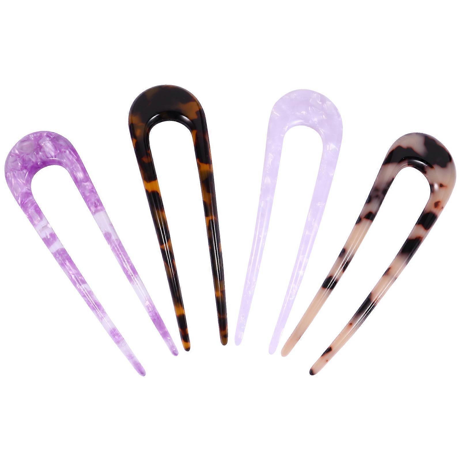 U-Shaped Hair Pin Sticks Acetate Wavy U-shaped Hairpin Sticks Female Hair Accessory Ivory White No-skid 4Pcs