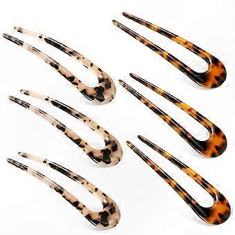 2-Prong Tortoise Shell Chignon Sticks, U-Shaped Hair Fork Pins, 6 Pieces