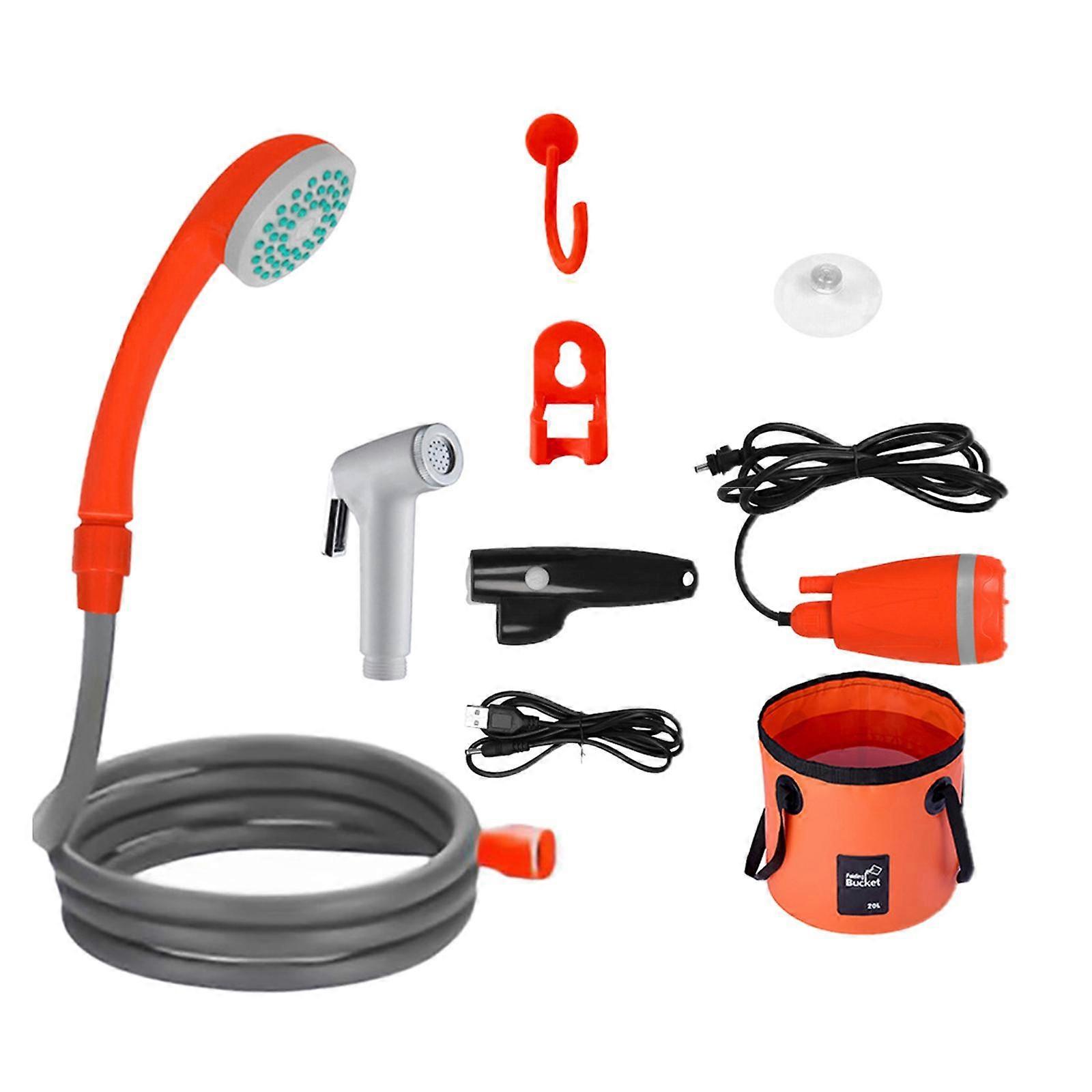 Portable Shower for Camping Electric Shower Pump for Hiking Travel Gardening Orange