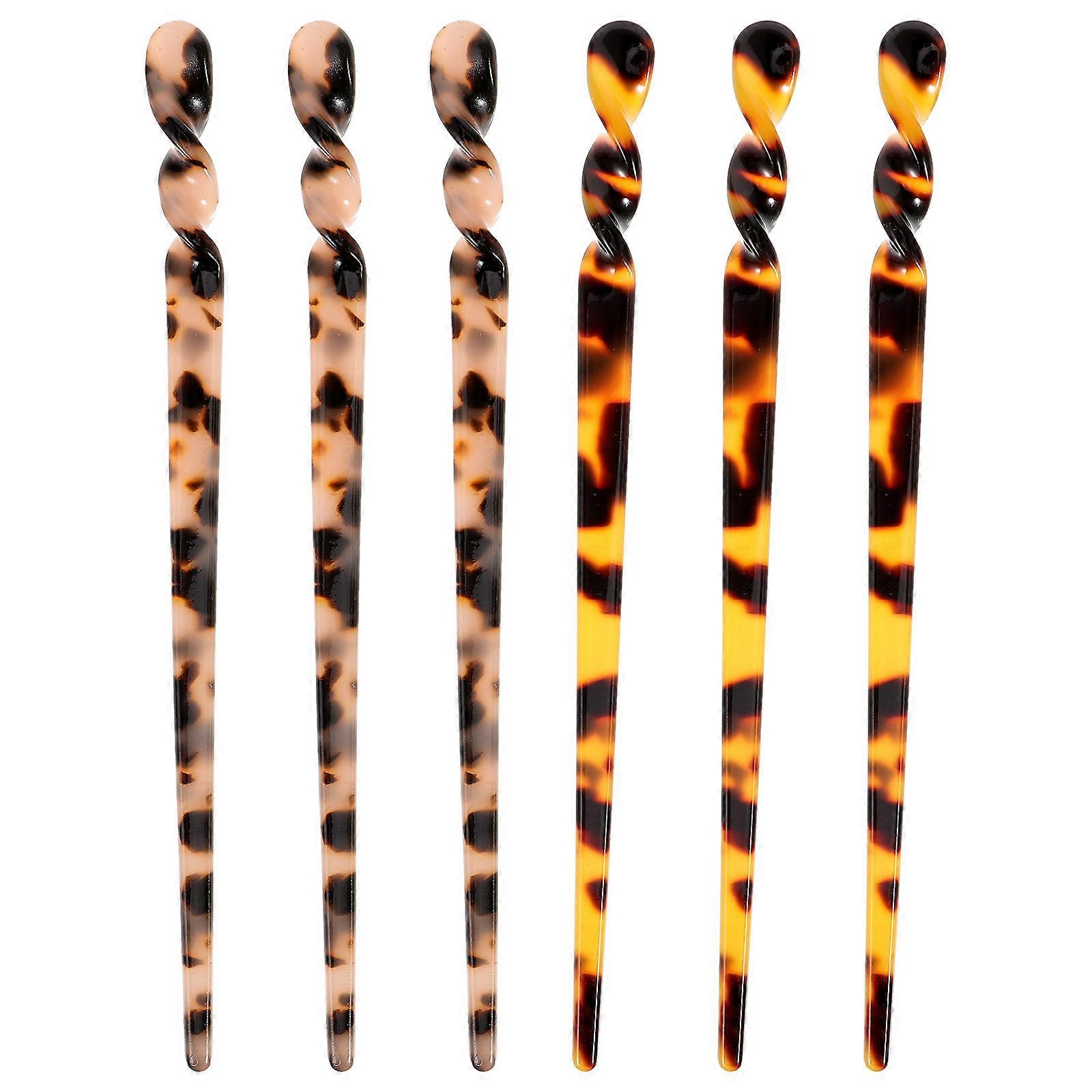 Decorative Hair Stick Chinese Hair Chopsticks Daily Use Light Tortoiseshhell One-Line Design 6Pcs