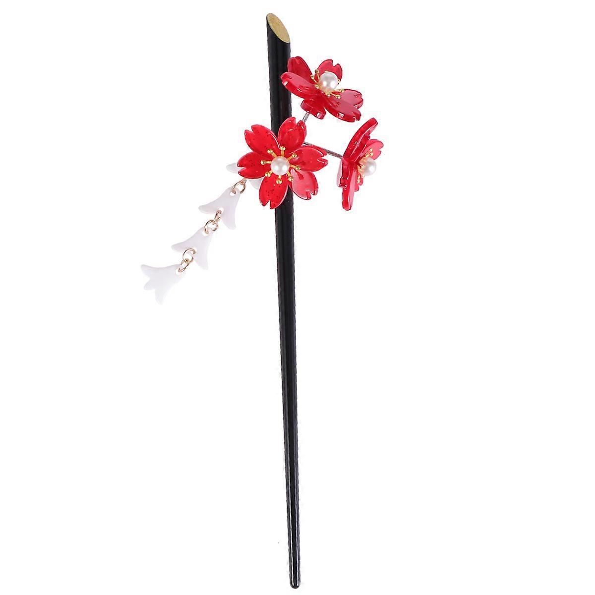 Acrylic Vintage Hair Stick with Red Acrylic Cherry Blossom Cluster and Tassel Fringed Hairpin Hair Accessories for Women and Girls
