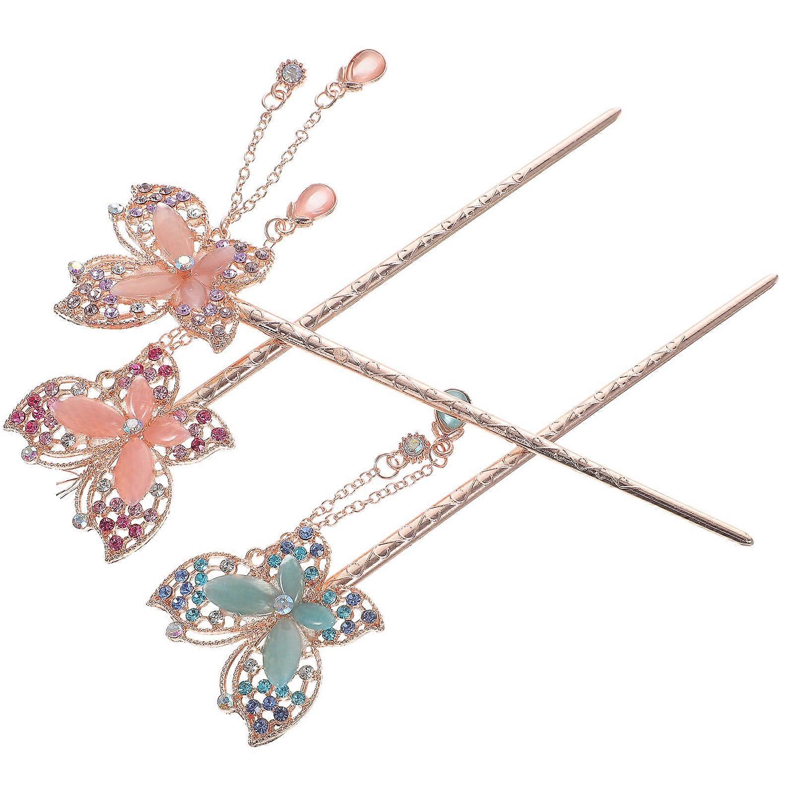 Butterfly Hair Stick Vintage Hair Sticks for Buns 6Pcs Assorted Color Alloy