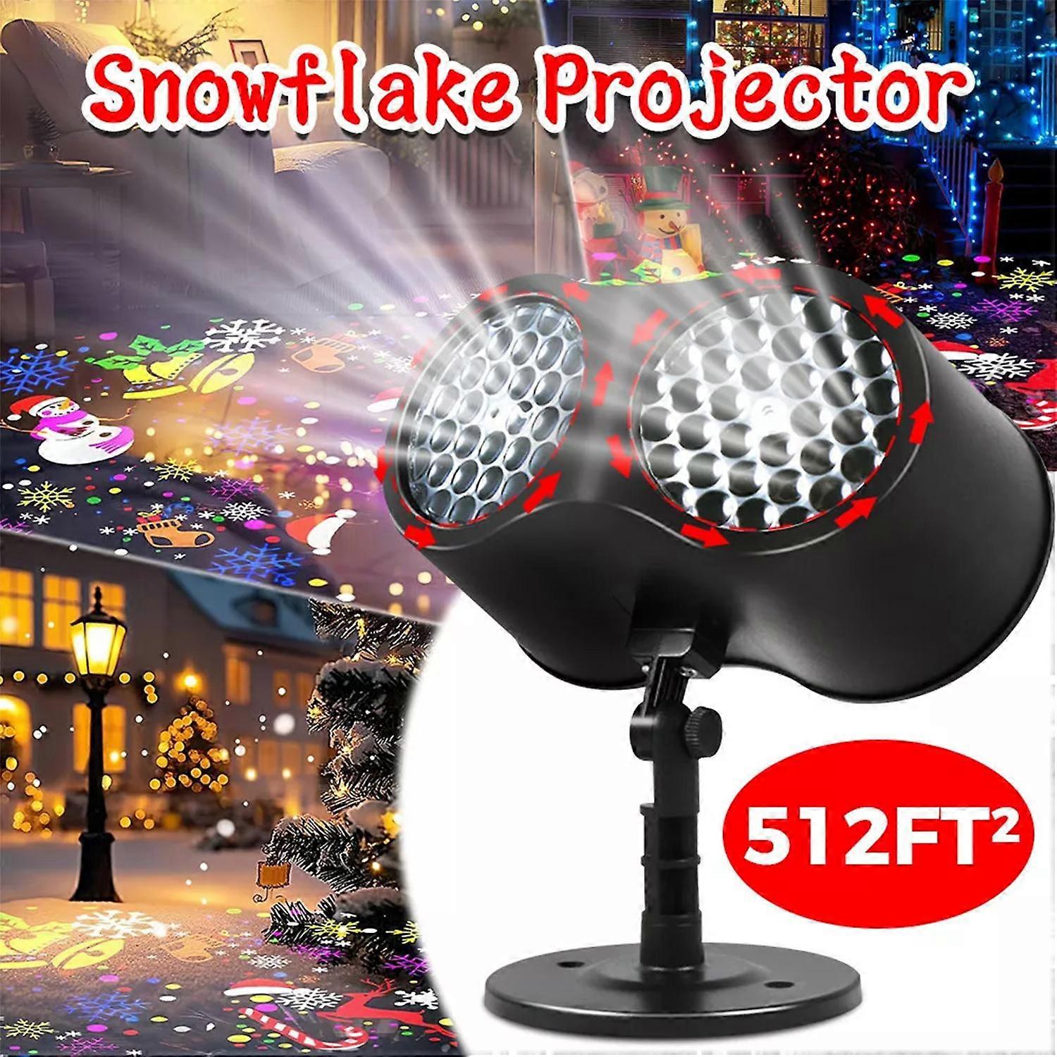Features 1. High definition dual head Christmas lights: Christmas decoration LED floodlights with automatic rotation of Christmas patterns and various Christmas patterns. The Christmas projection lamp adopts first-class slanted lens and anti fading film, so there is no need to worry about the projection effect deteriorating. The Christmas LED projector has super bright light beads, a large projection area, and clearer display of Christmas projector patterns. 2. Beautiful projection effect: Our projection lights and moving snowflakes create a festive and romantic atmosphere, perfect for Christmas. Every snowflake spins and jumps, making you feel like you're in a white fairy tale world. 3. Rotating Christmas Projector Lamp: The Christmas lamp projector has a rotating universal bracket, so the projection angle can be freely adjusted. The rotating LED projector Christmas light can be hung on the wall or placed on the floor, which is both safe and convenient. 4. Widely applicable: Very suitable for various occasions, festivals, and gatherings. Festivals such as Christmas, Halloween, Easter, Thanksgiving, and Carnival. Can be used as landscape lights, decorative lights, lawn lights, and garden lights. This LED floodlight can be widely used in discotheques, clubs, bars, banquets, weddings, family gatherings, children's rooms, etc. Specification Pattern: US, EU, AU, UK Product size: 17 x 16 cm Color box size: 18 x 12.5 x 13 cm Operation mode: automatic Product power: 9W Working voltage: AC110V-240V, 50/60HZ Output voltage: 12VDC Output current: 480MA Power cord: 1 meter Projection distance: 3-10 meters Illumination area: 22-54 square meters Packaging accessories: lamp body, chassis Package Include: 1x Lamp body 1x Chassis